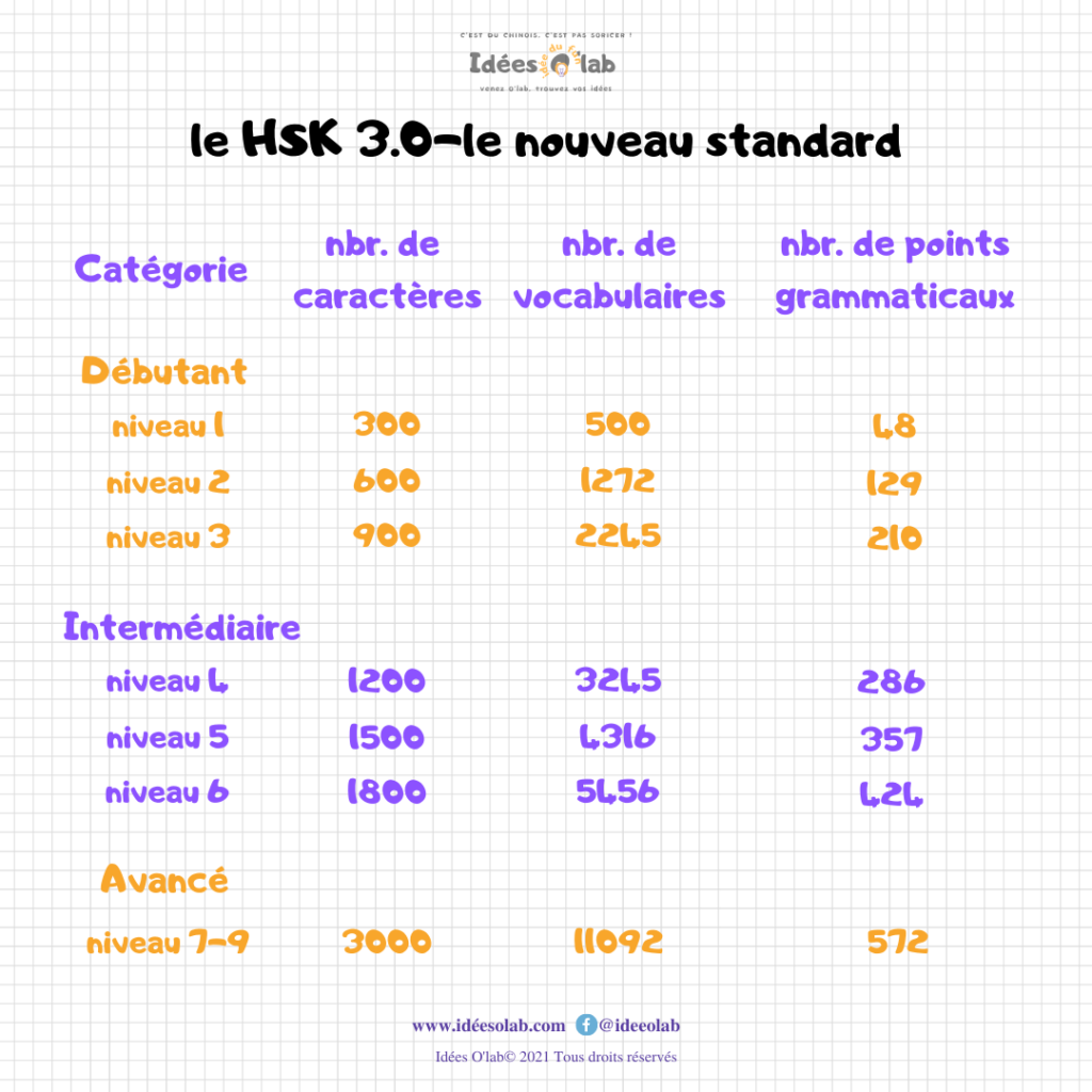 Prenons l’exemple du HSK 1. Dorénavant, son niveau seuil est rehaussé, commençant par 300 caractères, 500 vocabulaires et 48 points grammaticaux. Non seulement le nombre de caractères à maîtriser est doublé, mais il introduit également un niveau plus complexe sur les tâches communicatives.